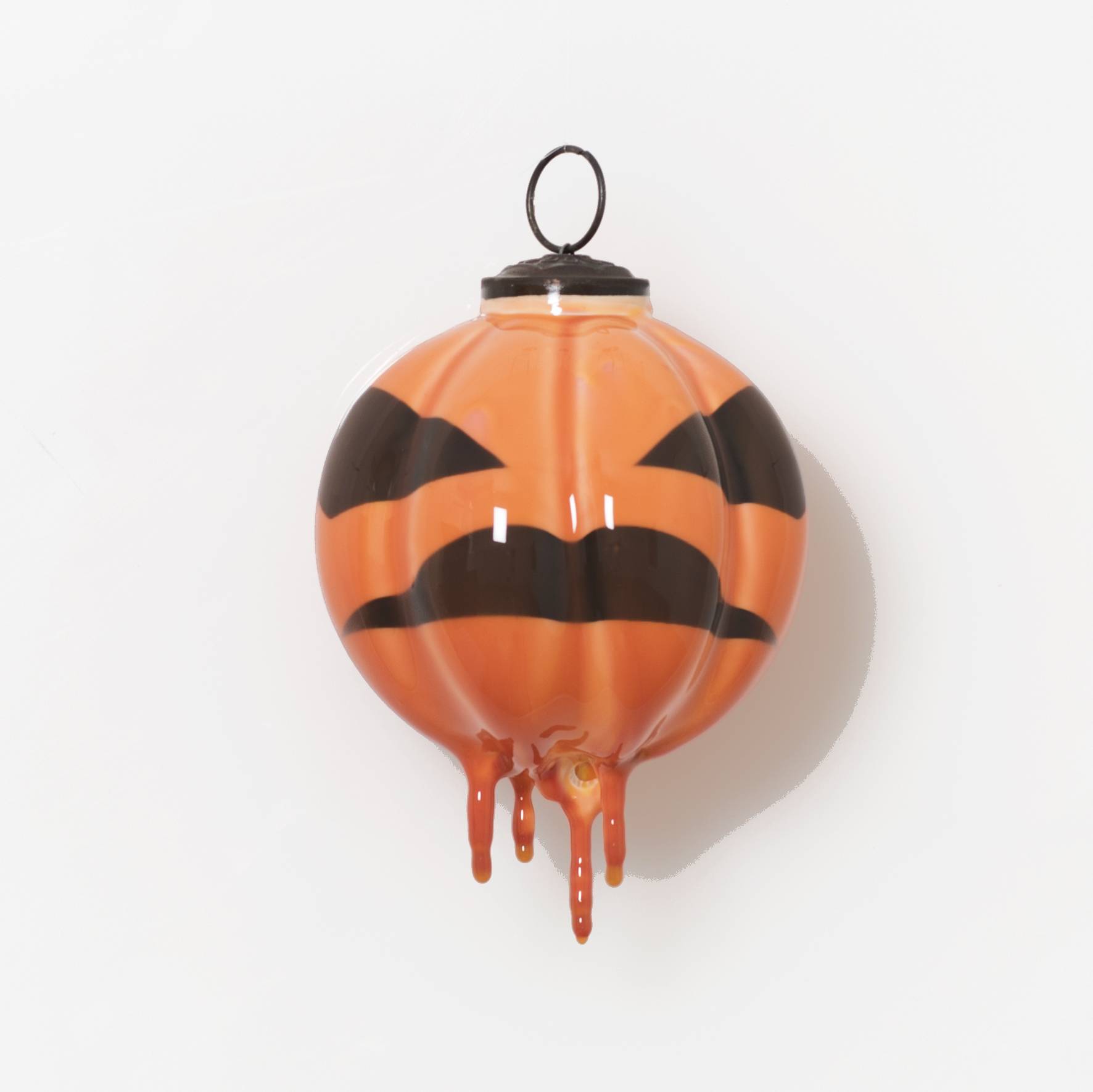 ‘East meets west in these wicked Chinese Lantern Pumpkin hybrids. Hand-dipped by artist Shane Bradford in various layers of coloured emulsions, the faces are made solely from lines created by dipping, that is why each one is different and has its own cheeky expression. Seeming perhaps like ghoulish entrails, the stalactite paint appendage reminds us of the repeat technique as well as the overlap of global, contemporary and traditional culture. Happy halloween. Happy Chinese festival.’